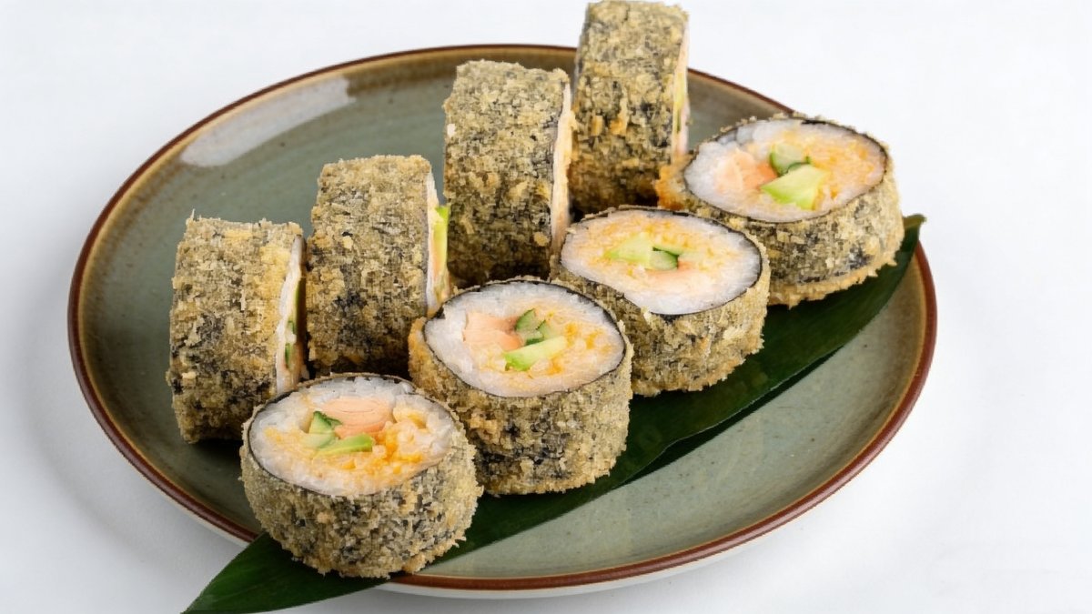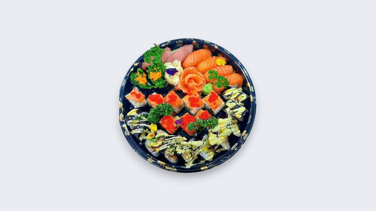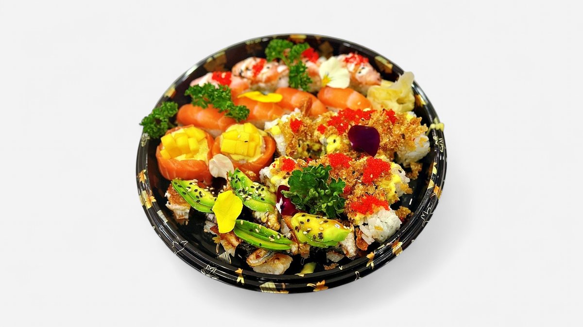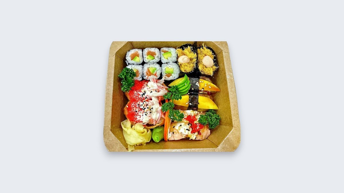 U rolu se nalaze: losos, tuna, krabov štapić, pržena piletina, krastavac, tempura mrvice, ikra od rakova.(Za sve vrste sushija besplatno se dostavljaju sushi sos, wasabi i ukiseljeni đumbir.)