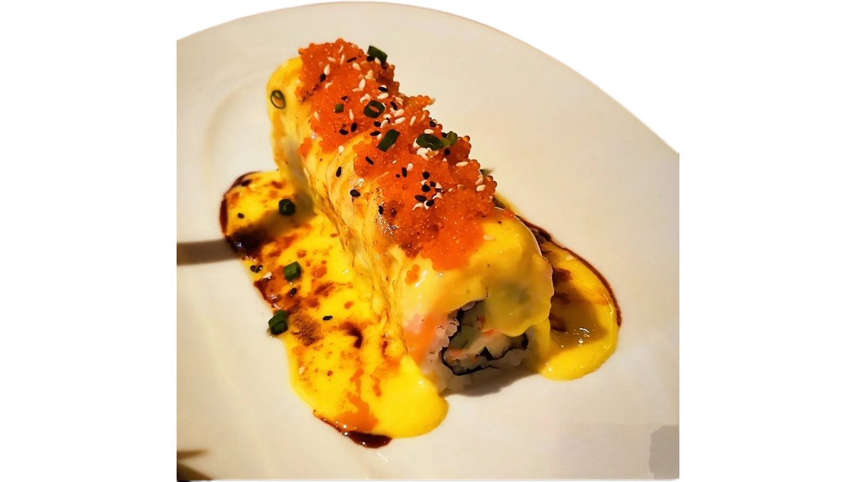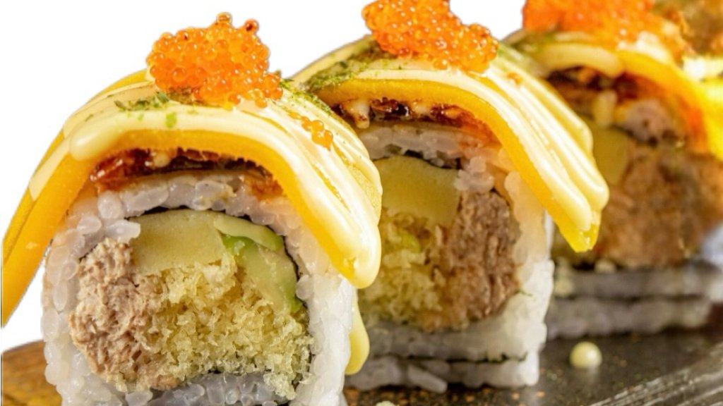 U rolu se nalaze: mango, jegulja, tuna, tempura mrvice, tamago, leteća ikra. (Za sve vrste sushija besplatno se dostavljaju sushi sos, wasabi i ukiseljeni đumbir.)