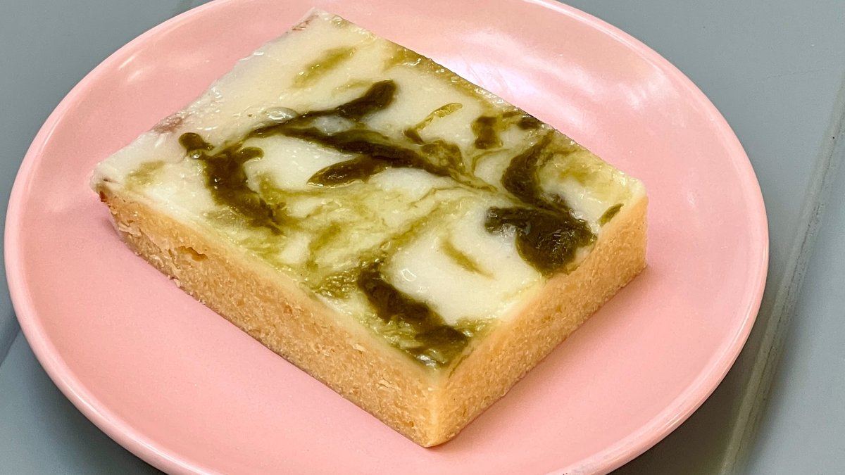 Lemon Blondie with matcha glaze