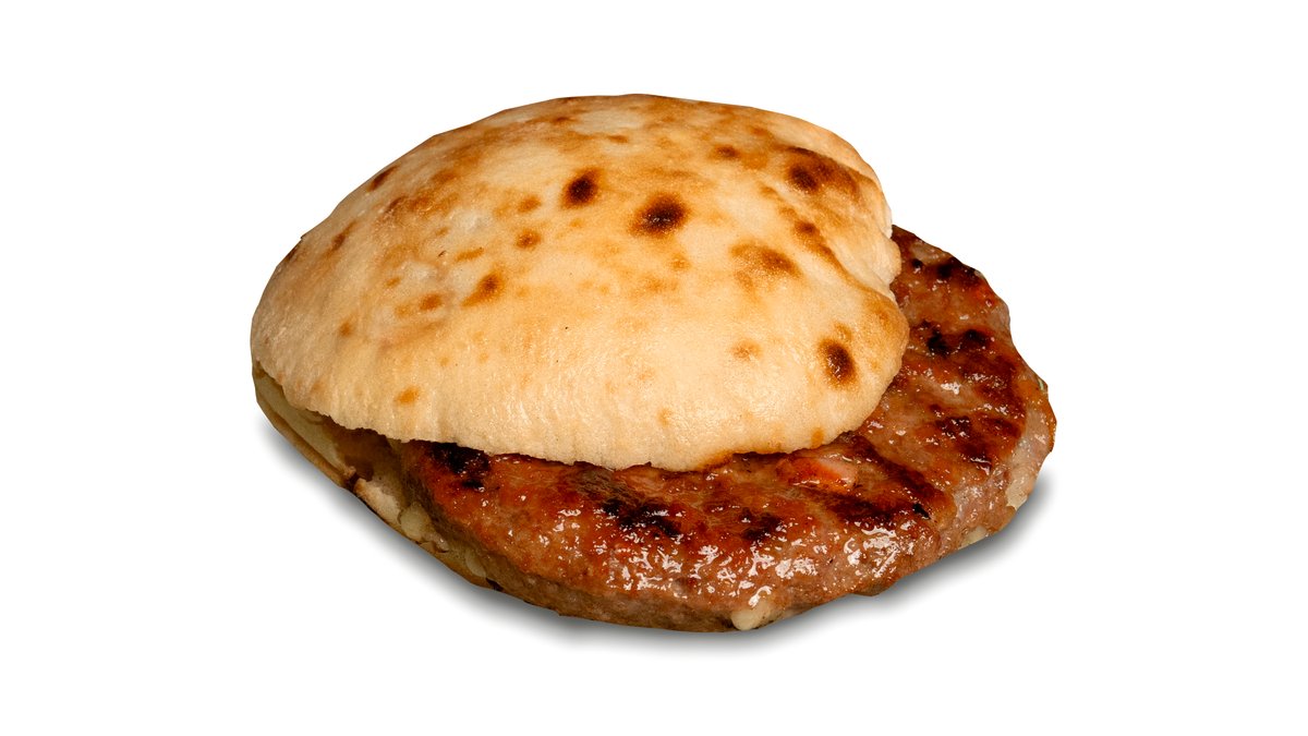 Pljeskavica punjena kačkavaljem i slaninom, u somunu i dodaci po izboru