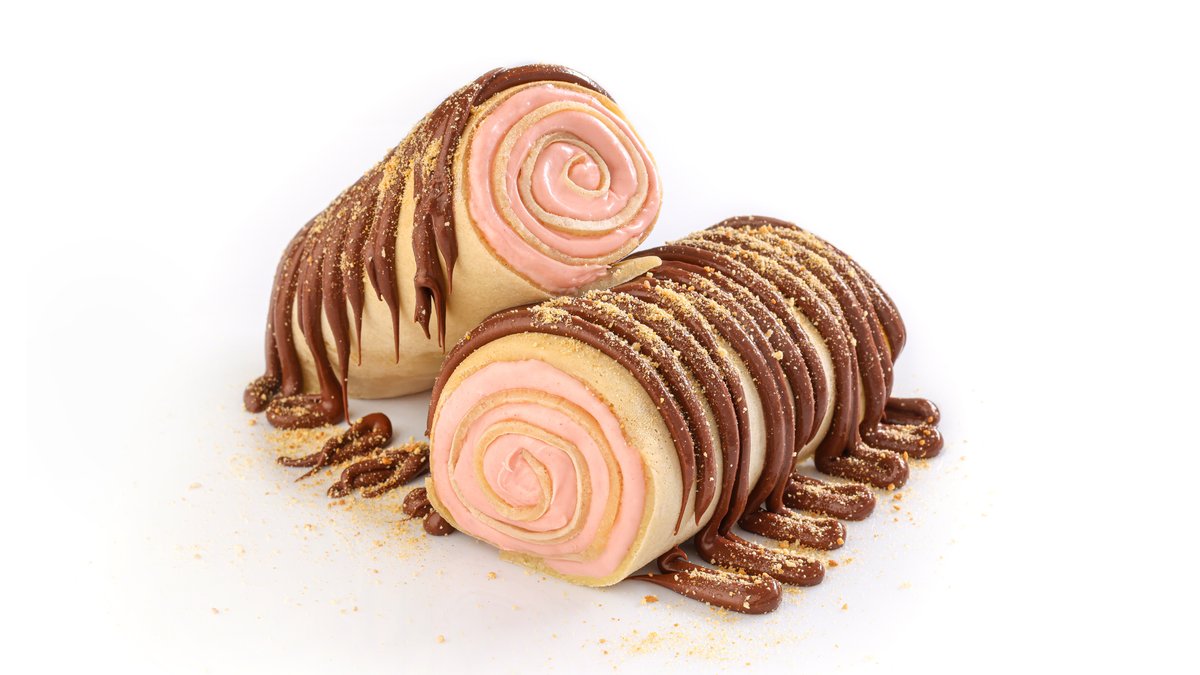 Filovana mlečnim kremom od jagode, prelivena nutelom i plazma keksom