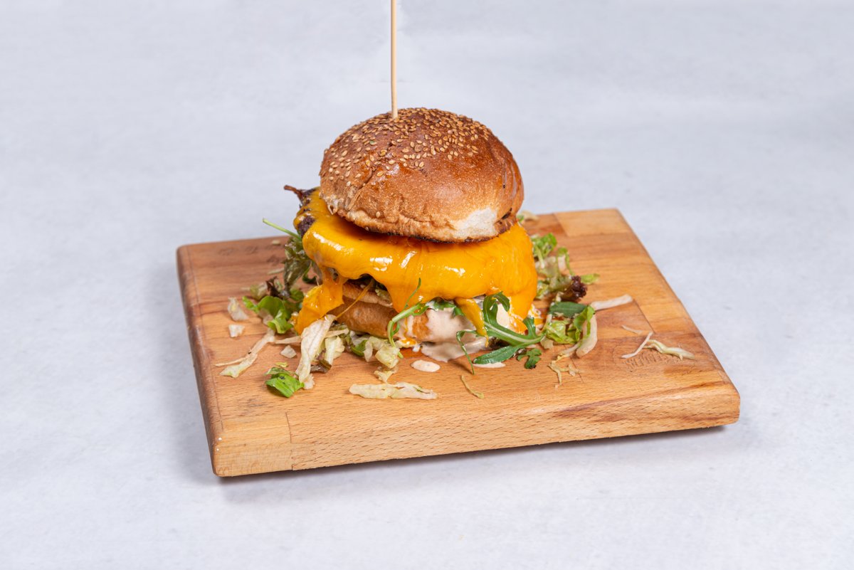 Piletina, hrskava slanina, cheddar sir, burger sos, hrskavi luk I miks salata