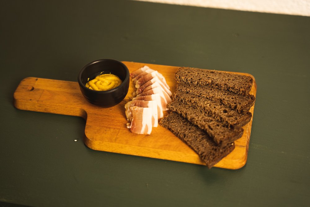 Slanina sa borodinskim hlebom i senfom