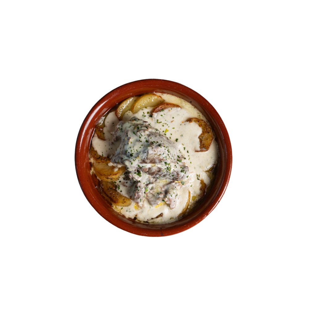 Sporo pečena jagnjetina bez kostiju sa krompirima u sosu od kajmaka
