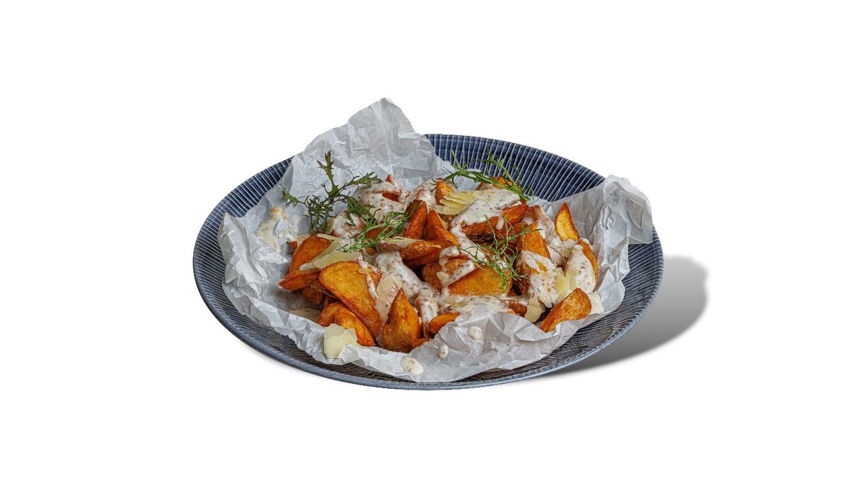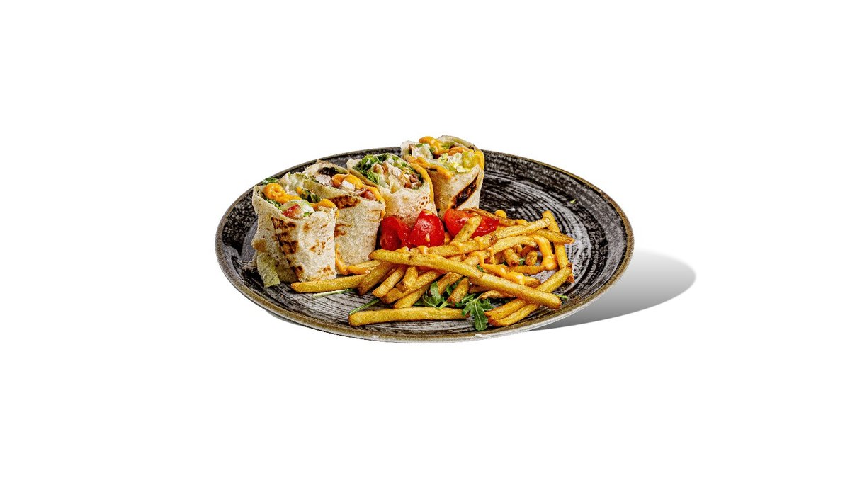 piletina, iceberg, cezar dresing, kackavlj, hrskava slaninica, pomfrit