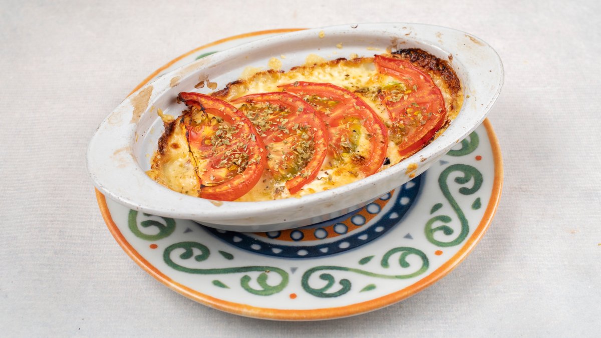 Zapečeni feta sir sa kačkavaljem, paprikama, paradajzom i origanom - blago ljuto.
