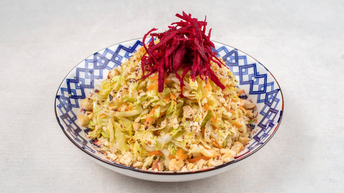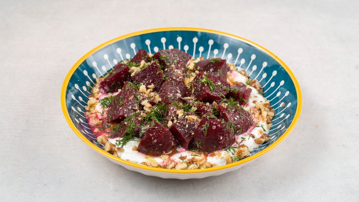 Salata od cvekle, kisele pavlake, oraha, mirođije i belog luka.