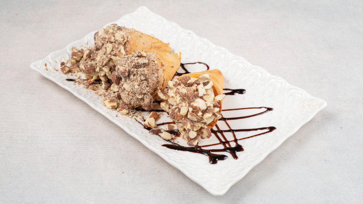 Trouglići od kore za baklavu utopljene u sirup punjene sa kremom od valile ili čokolade
