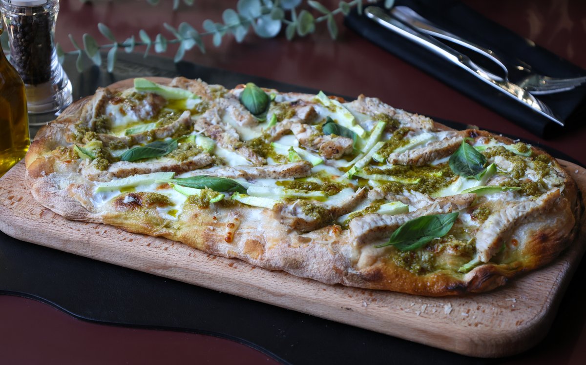 Pavlaka sos, rikota, mocarela, ćureći file, tikvice, pesto sos