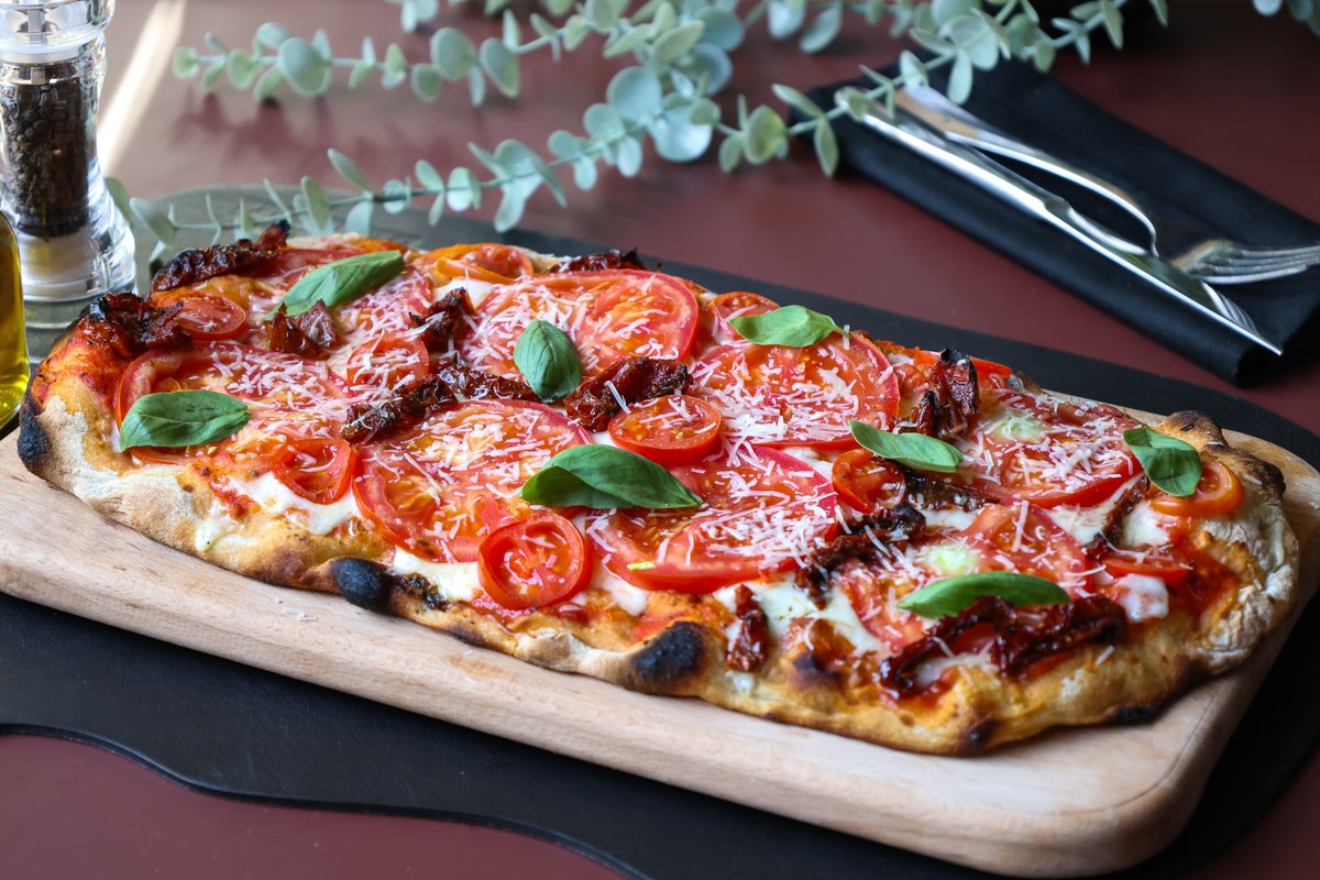 Pelat, mocarela, parmezan, paradajz, cherry paradajz, sušeni paradajz, bosiljak