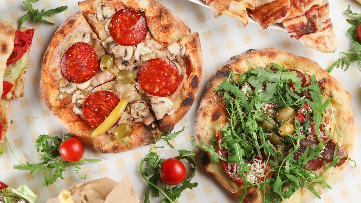 Pelat, šampinjoni, kačkavalj, tunjevina, crni luk, paradajz, masline, limun, origano