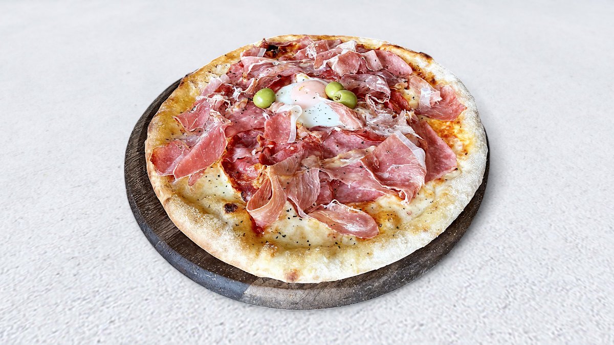 Zapečena jaja, pančeta, spanać u pizza testu, ulje belog luka