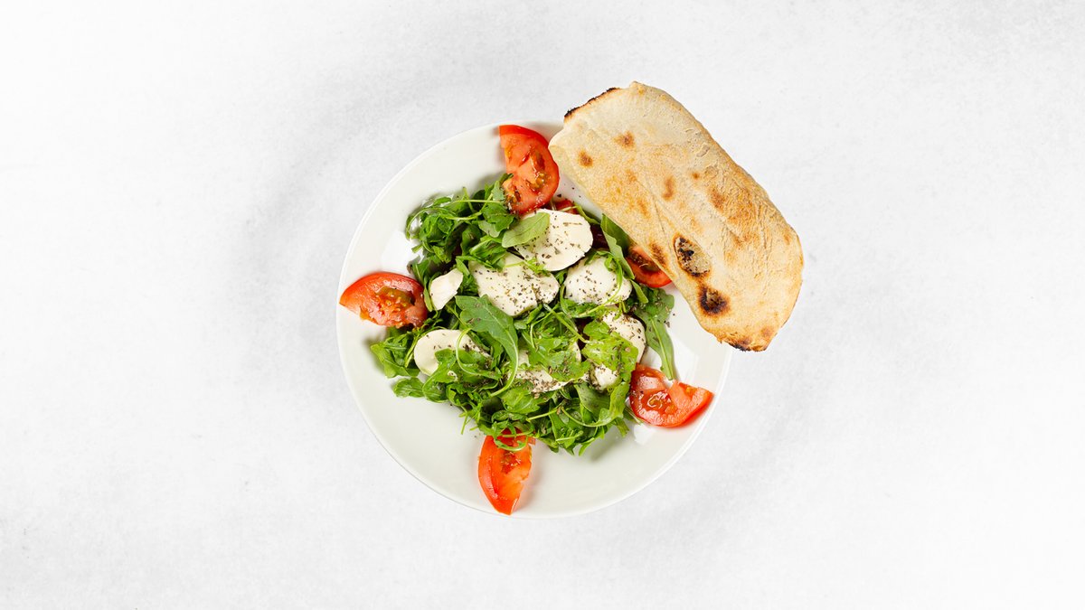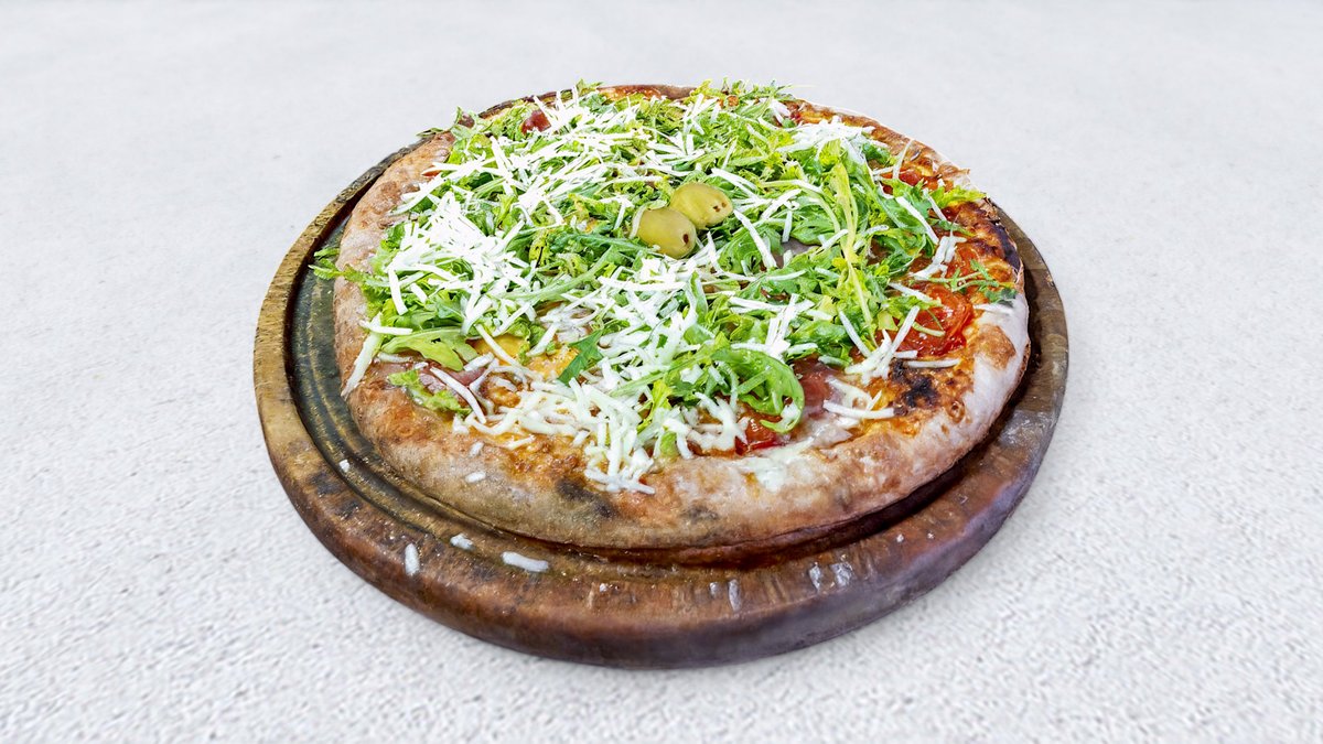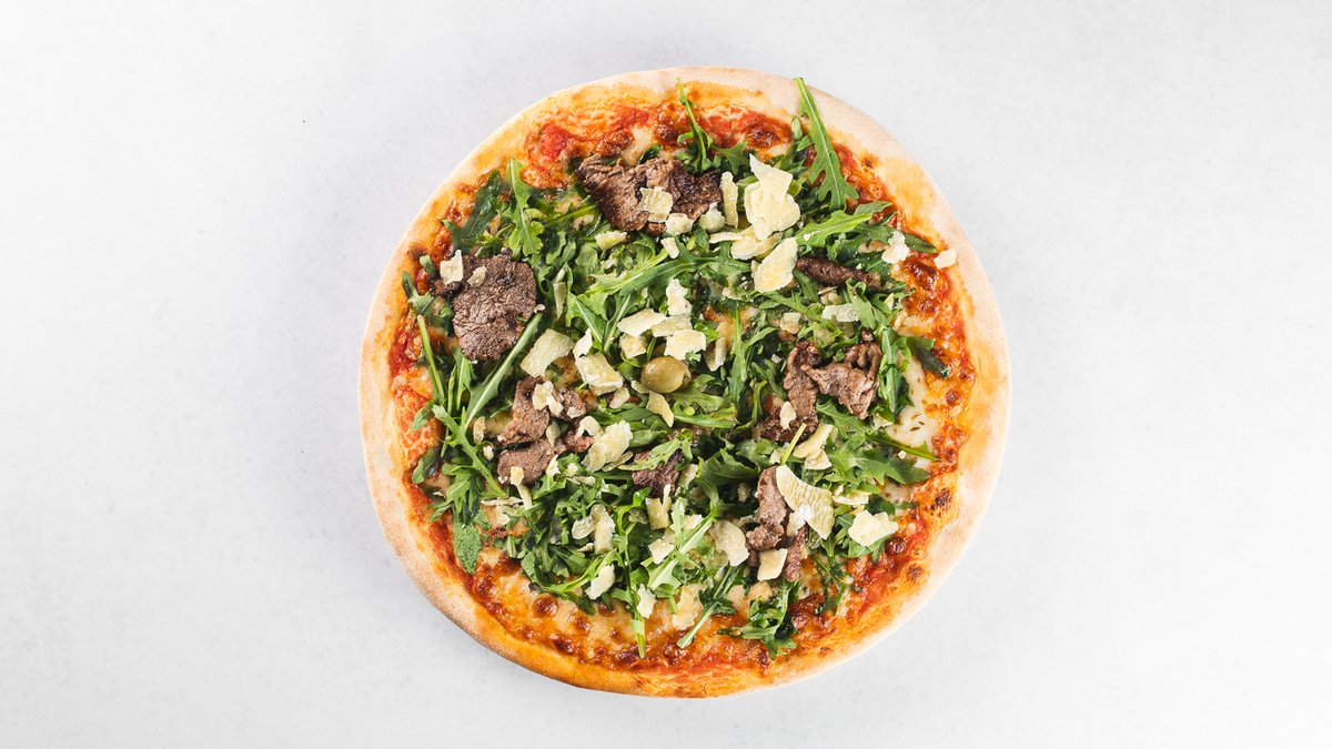 Pelat, mozzarella, pršuta, rukola, čeri paradajz, parmesan, maslinovo ulje
