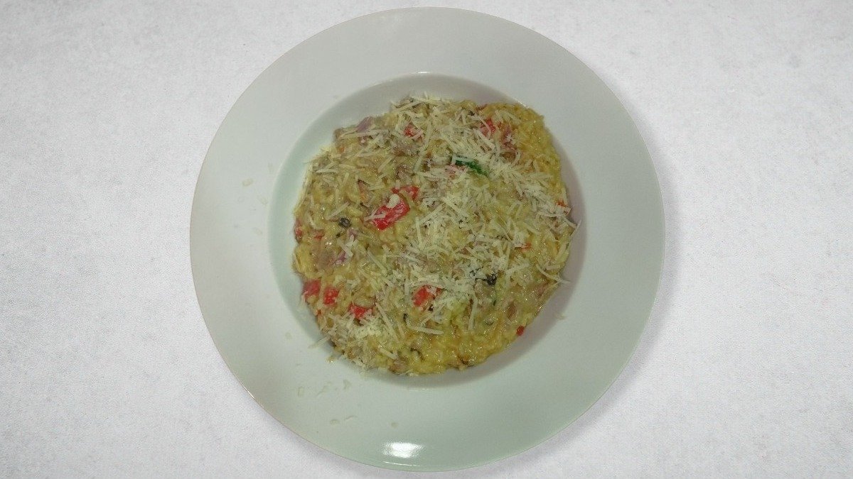 Morski plodovi, pirinač, pelat, beli luk, belo vino, parmezan