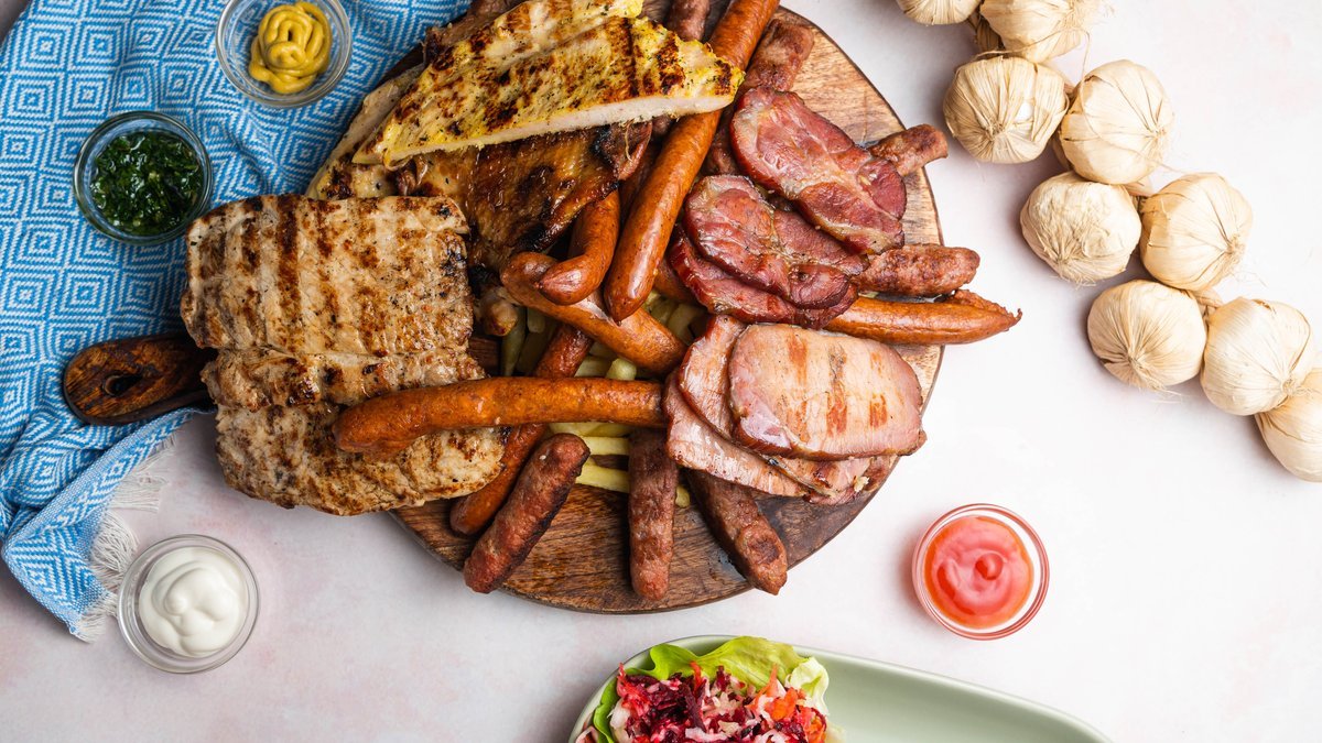 1,6kg mesa + 400g gratis pomfrita: 10 ćevapa 300g, pileće belo meso 200g, pileći batak 200g, kobasice 300g, vešalica 300g, dimljeni vrat 300g