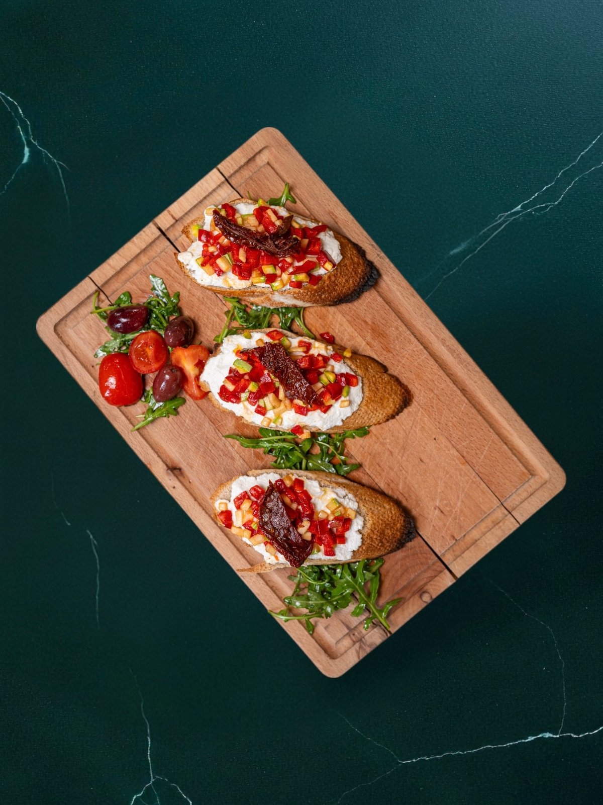 sušeni paradajz, pelat, sveža mocarela, rukola, masline