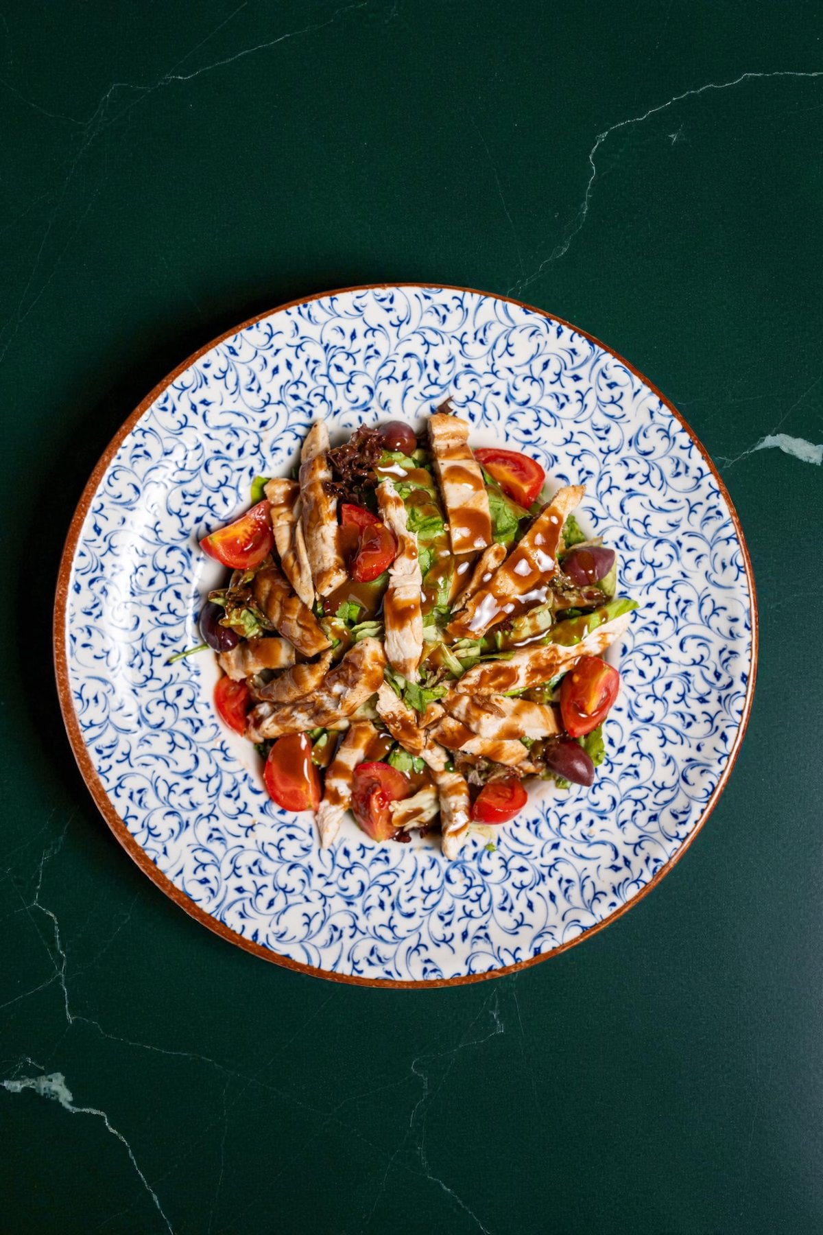 grilovana paprika, piletina, miks salata, kozji sir sa maslinama