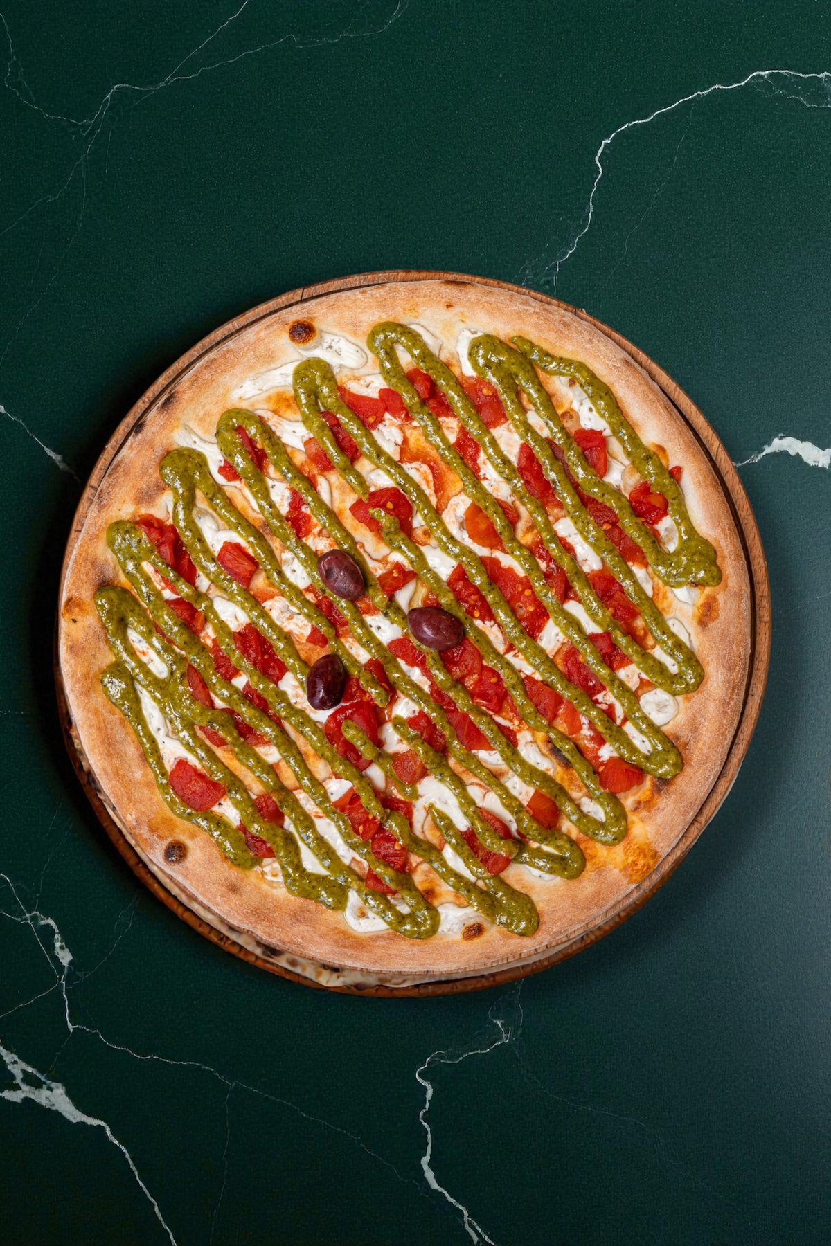 mocarela, bosiljak, maslinovo ulje, mortadela, pistaći, pasta od pistaća