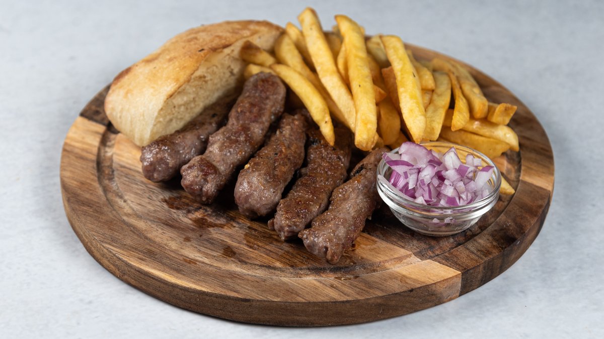 Ćevapi 300g, kobasica domaćinska 300g, krilca bbq 500g, pomfrit 300g