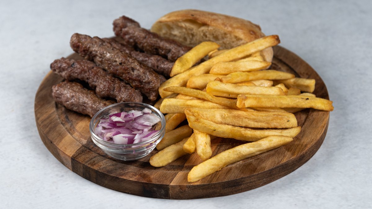 Ćevapi 300g, kobasica sir 300g, krilca senf med 500g, pomfrit 300g
