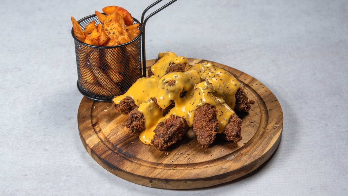 Bavarska kifla Sporo kuvana svinjetina šampinjoni Mladi luk Kajmak Vedzis krompir Kečap