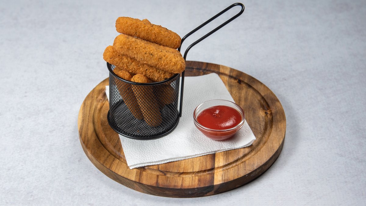 Pohovano pileće belo meso u papriko prezli, pomfrit 150g, garlic mayo