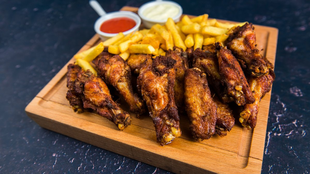 Pileća krilca u bbq sosu, 1kg, pomfrit