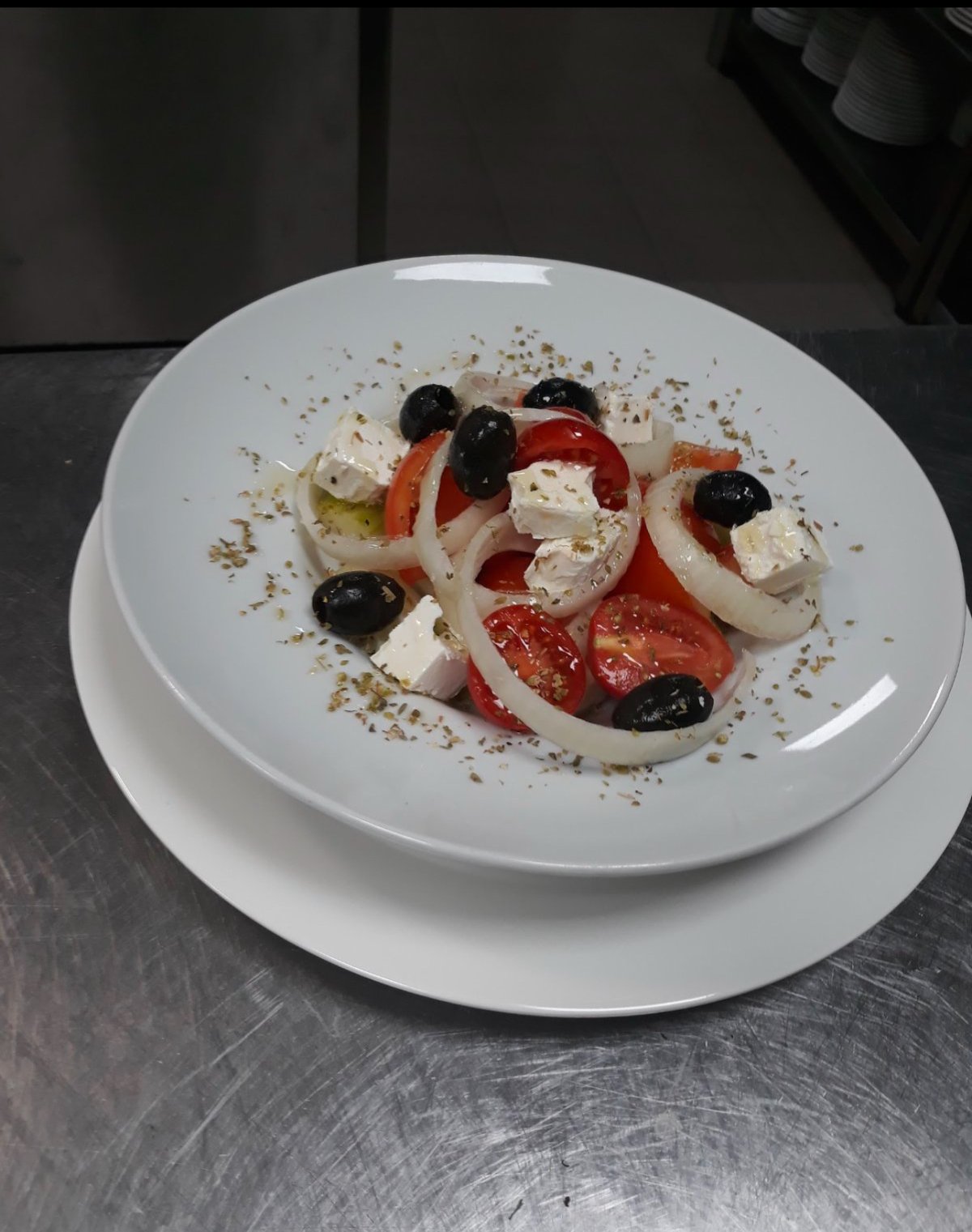 Paradajz, krastavac, crni luk, masline, feta sir