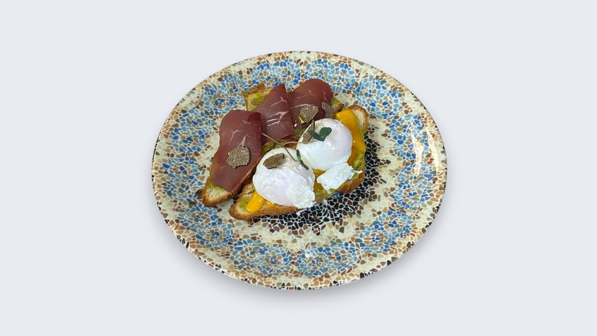 Poširana jaja u francuskom kroasanu-goveđa pršuta