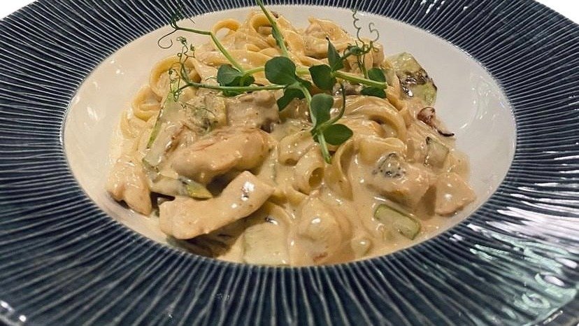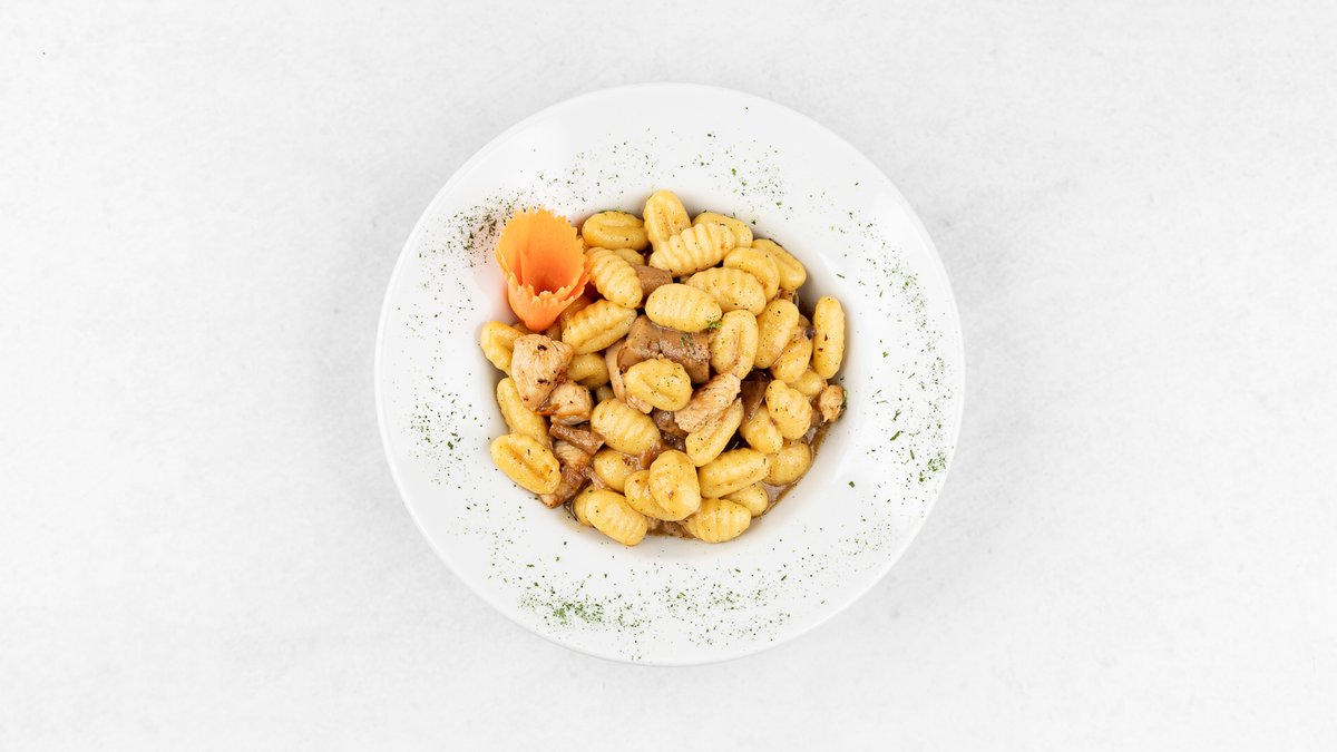 Grilovani pileći file zapečen na mladom krompiru sa mocarelom, slaninom i lešnikom