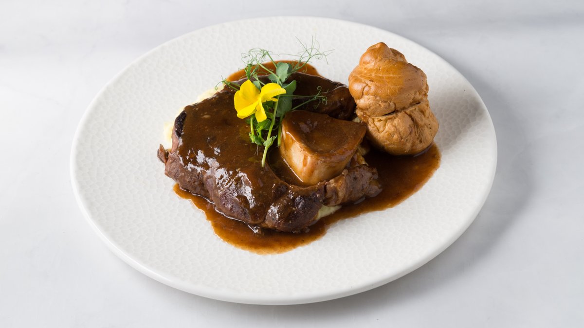 Meso angusa sa čedarom i slaninom, halapenjo paprikom, onion rings, wedges krompir sa dodatkom bbq sosa i sosom od 3 senfa