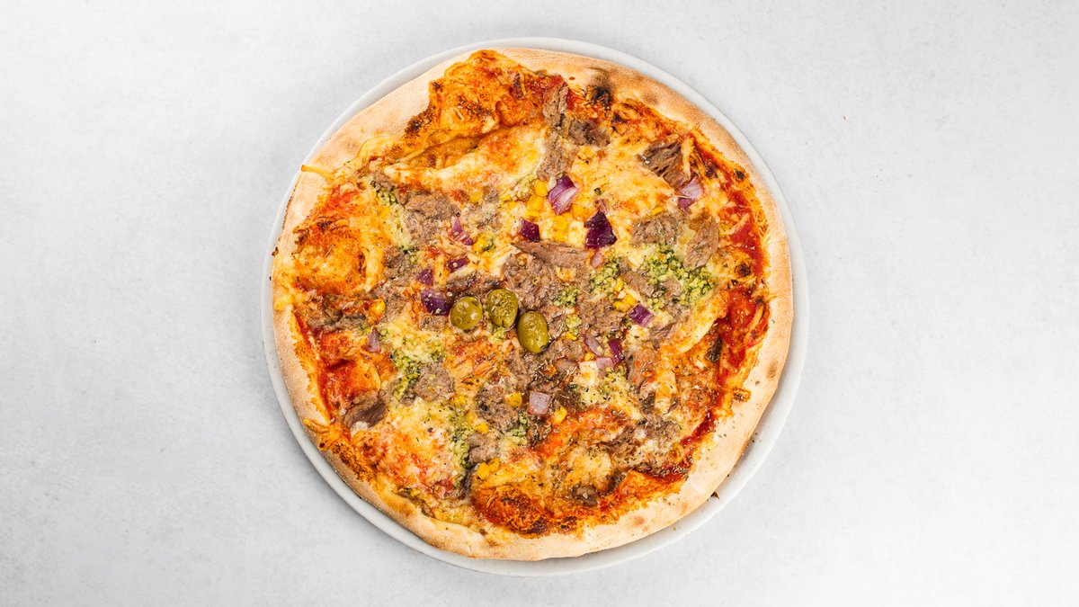 Paradajz, mocarela, šunka, pečurke, masline, origano