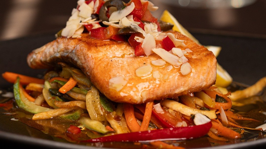 Miročki i kozji sa rukolom, pečenom paprikom, tostiranim bademima