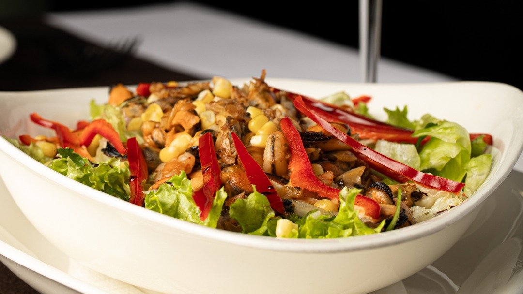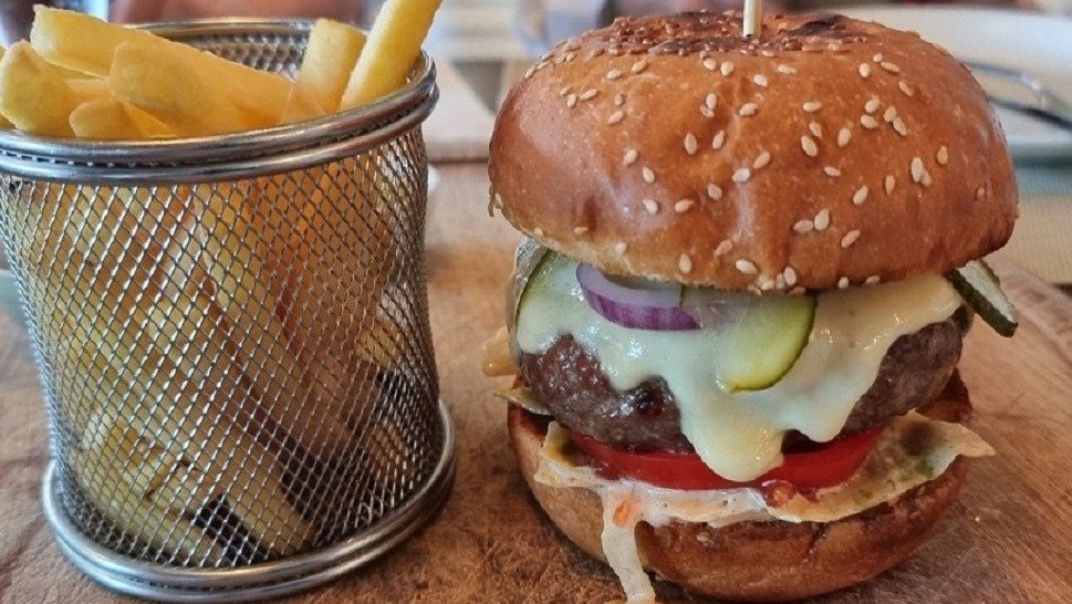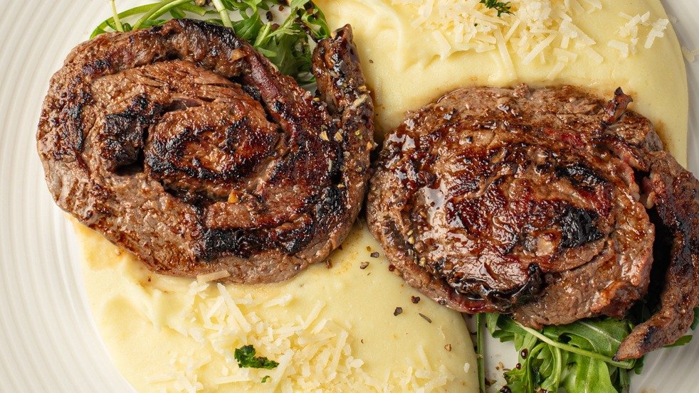 Biftek, jaja, feta, pohovan kačkavalj, tartar sos, rukola, pečurke, paradajz