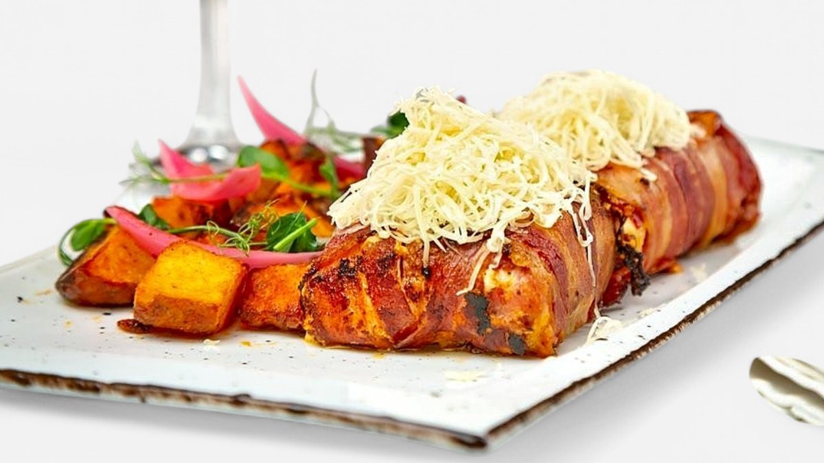 Pileći paketići sa uribesom, pršutom i kačkavaljem, rolovani slaninom