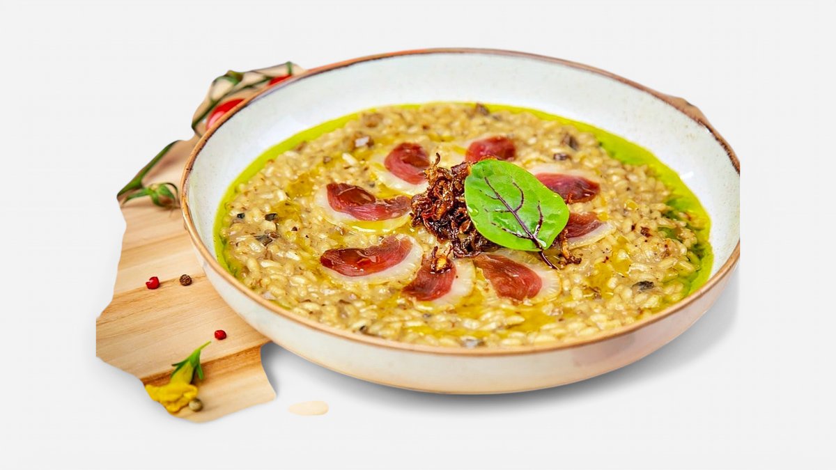 Rižoto sa bukovačom, kajmakom i pačijom pršutom