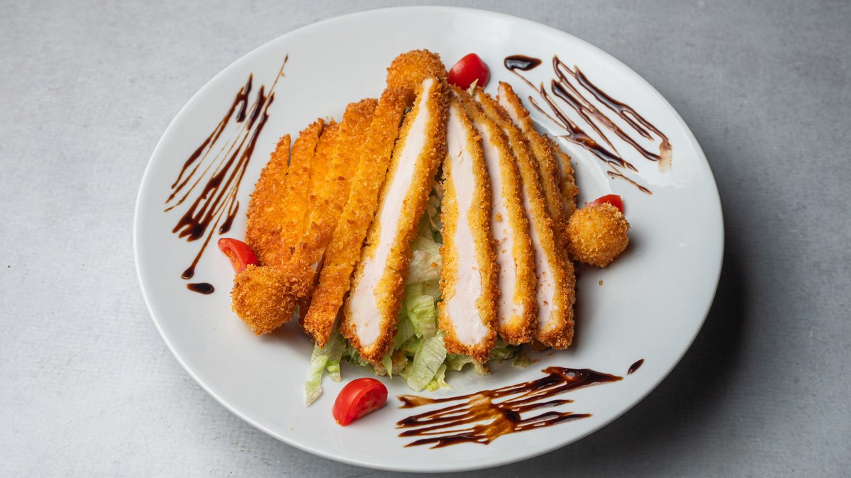 piletina, mix zelenih salata, rukola, pohovana “baby” mocarela