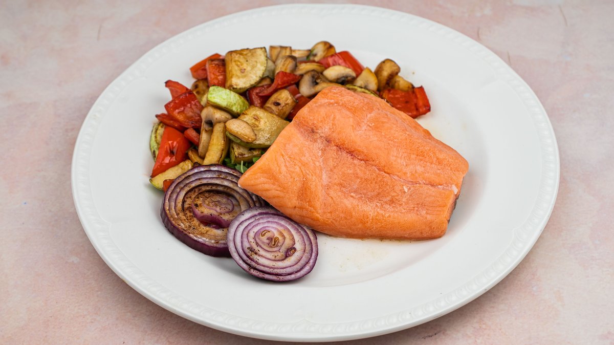 Grilovani losos, sa grilovanim pecurkama, tikvicama I paprikom