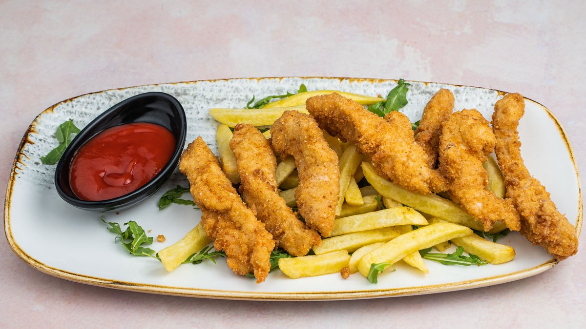 Pohovani pileci stapici, pomfrit I kecap