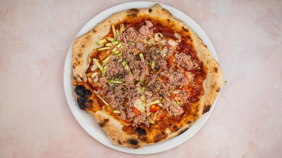 Pica testo, kackavalj, tikvice, paprika, pecurke, tuna