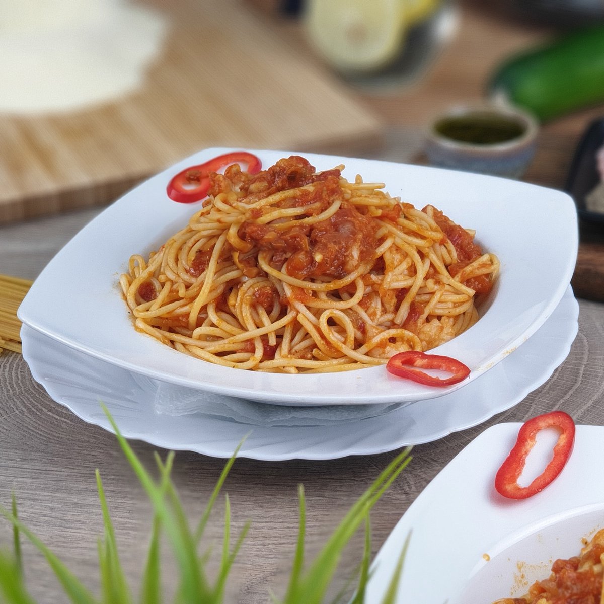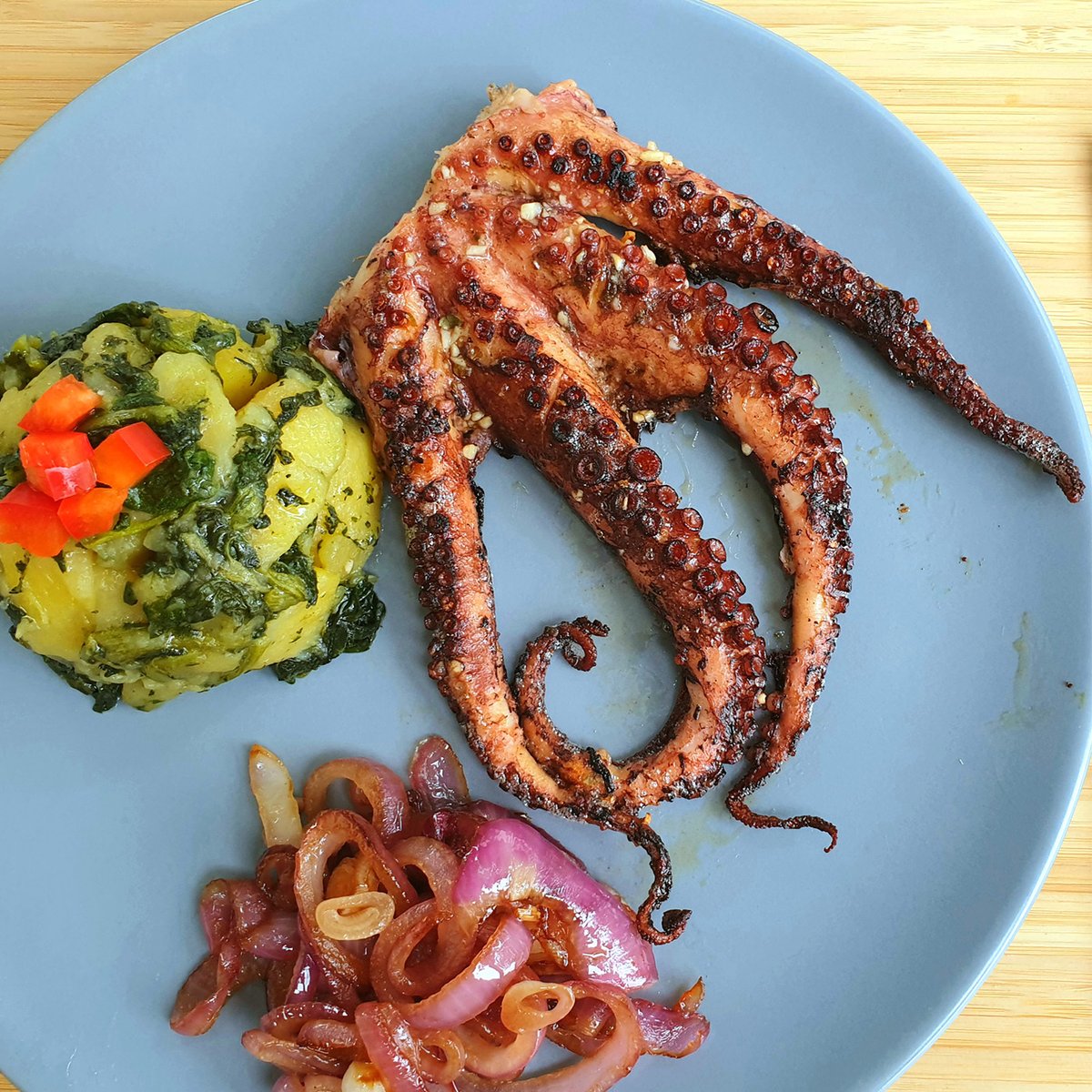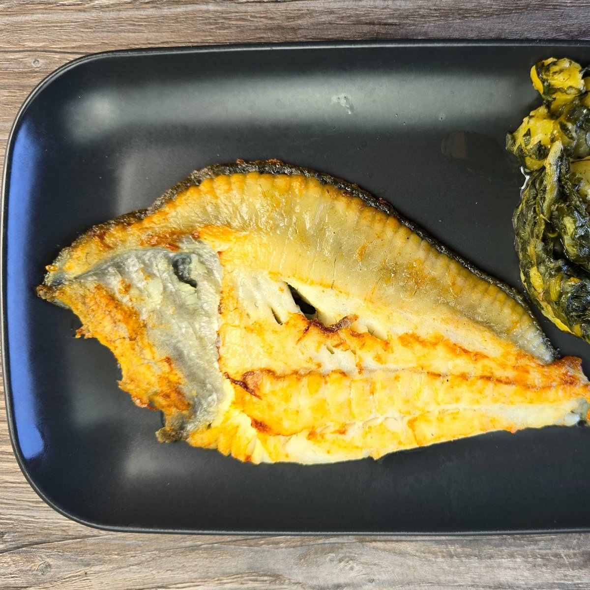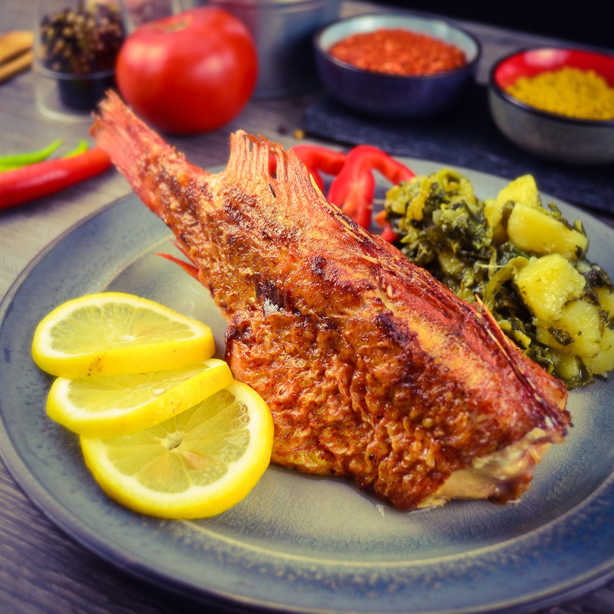 Filet oslića paniran u corn fleksu, bez jaja i mleka. Prilog pomfrit i dva umaka (taras sos i sweet chilli). Posno.