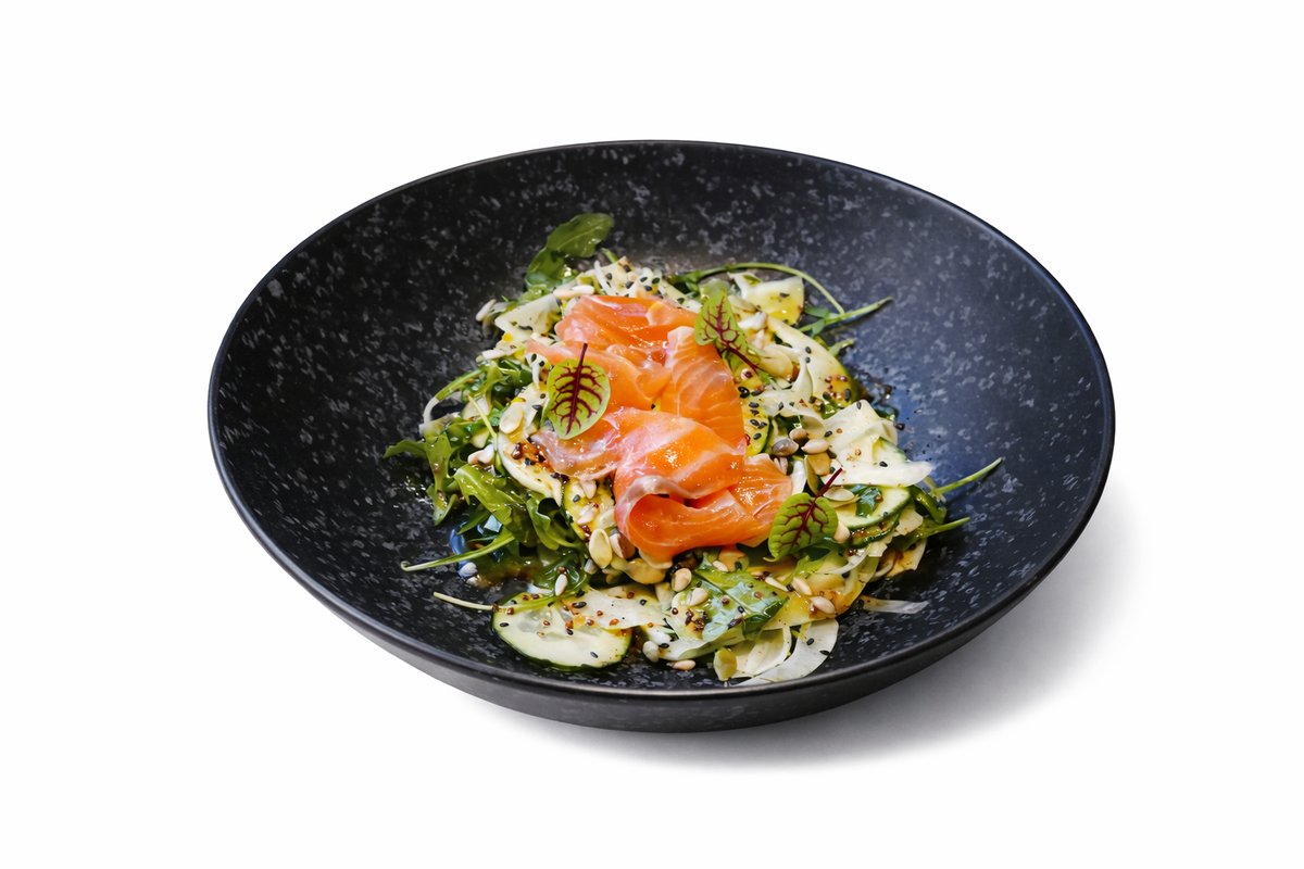 Salata sa lososom i komorcem sa rukolom, kaparom i krastavcem