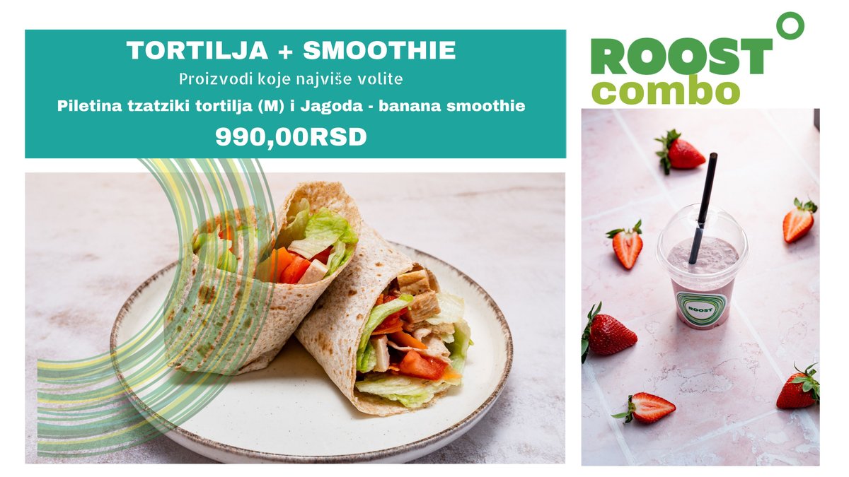 Piletina tzatziki tortilja (M) + Jagoda - banana smoothie