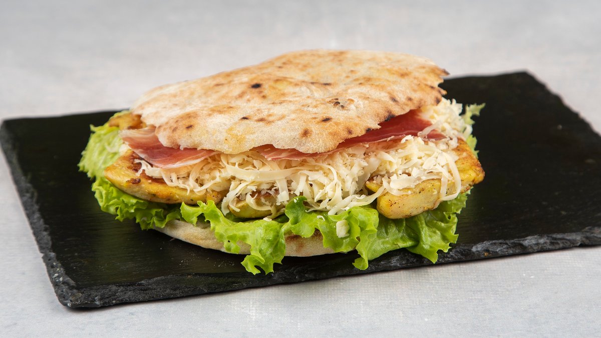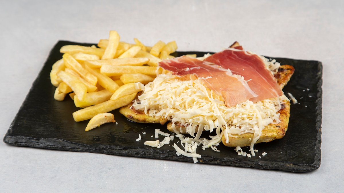 Batak sa kačkavaljem i pršutom, pomfrit, somun