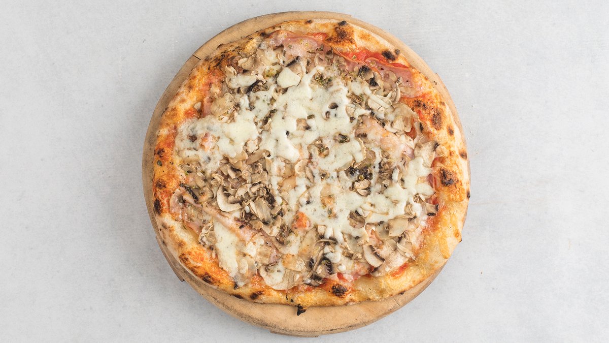 Pelat, Mocarela, Šunka, Pečurke, Origano, Masline