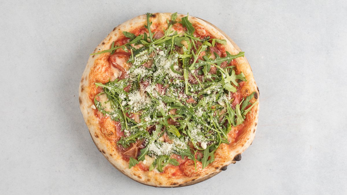 Pelat, Mocarela, Pančeta, Rukola, Parmezan, Čeri
