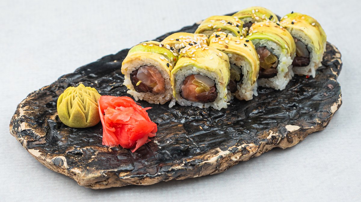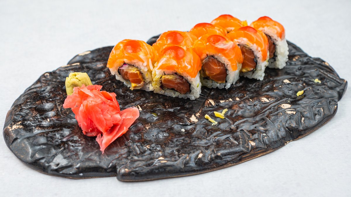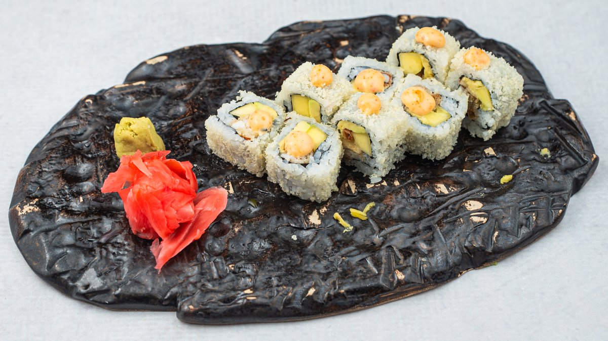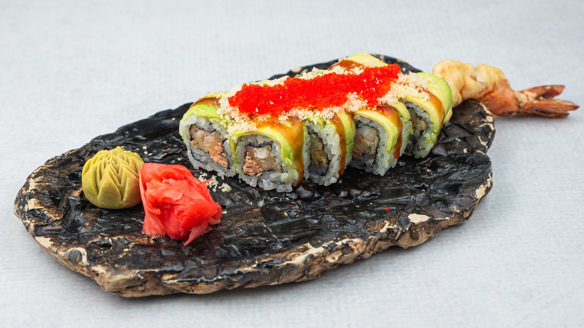(Gambor u tempuri, prženi losos, avokado, tobico, teriyaki sos)