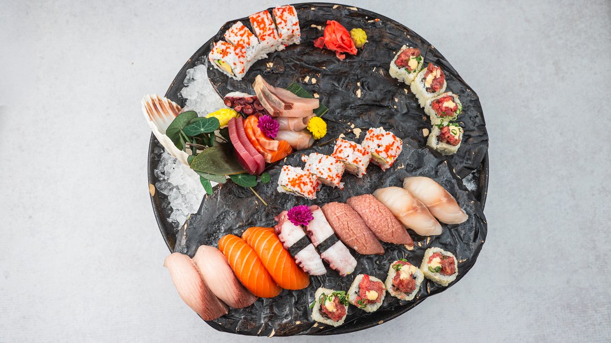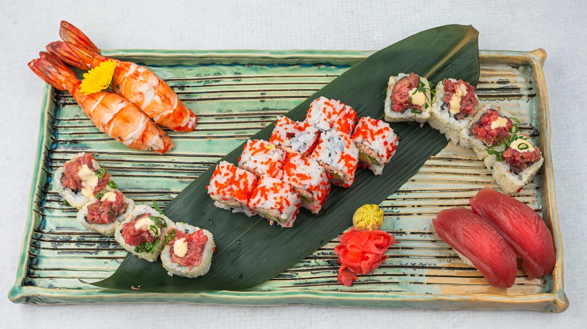 (Dimljeni losos, brancin, tuna, avokado, miso susam, mladi luk, marinirani dajkon, sakura sos)