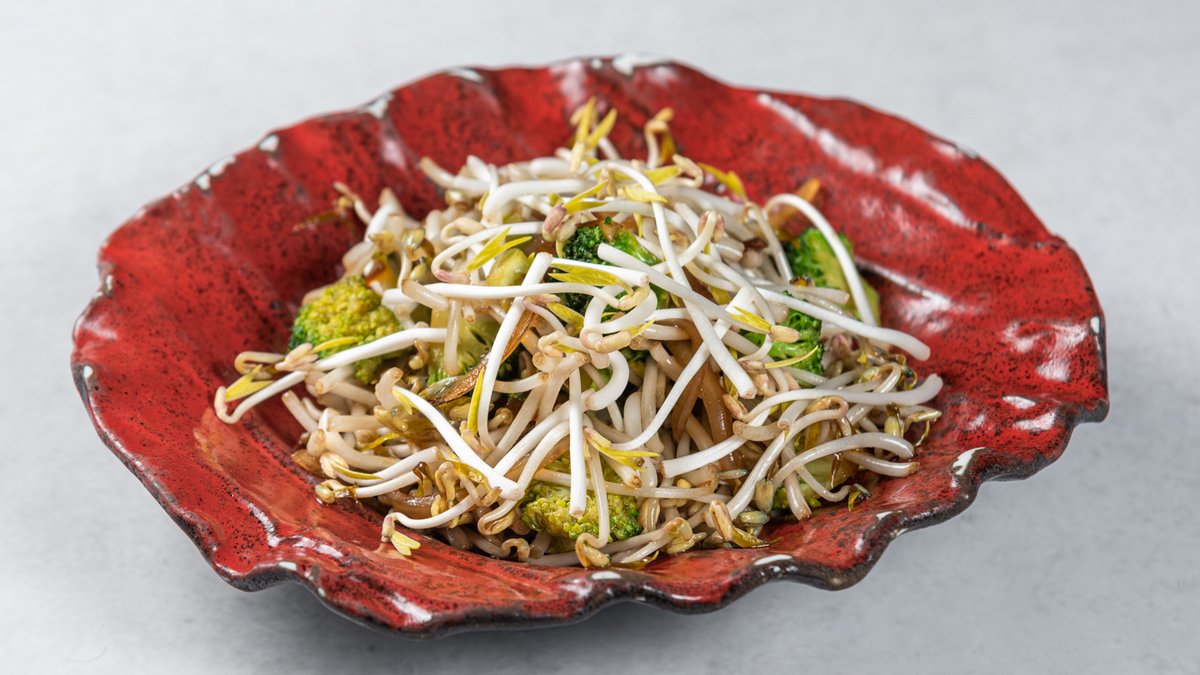 (Brokoli, klice od pasulja, crni luk, sos na bazi soje)