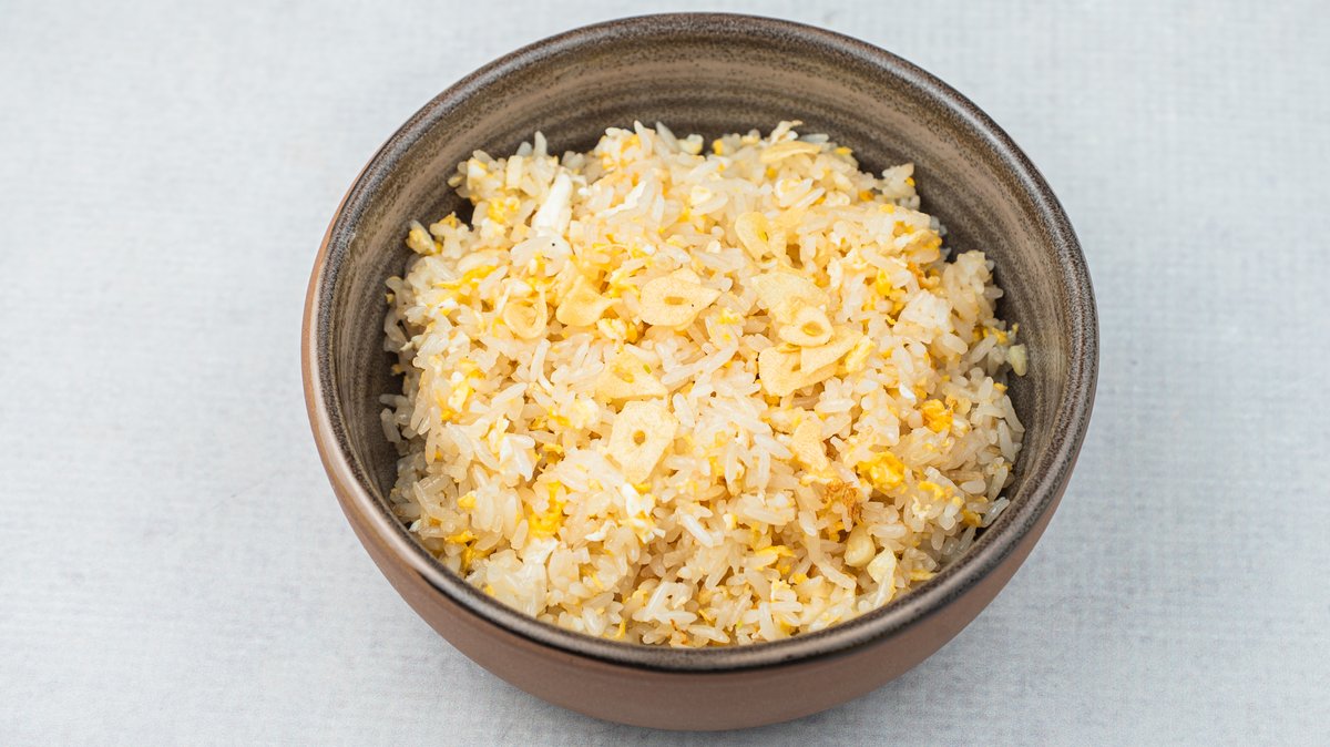 (Prženi pirinač sa jajetom i belim lukom)